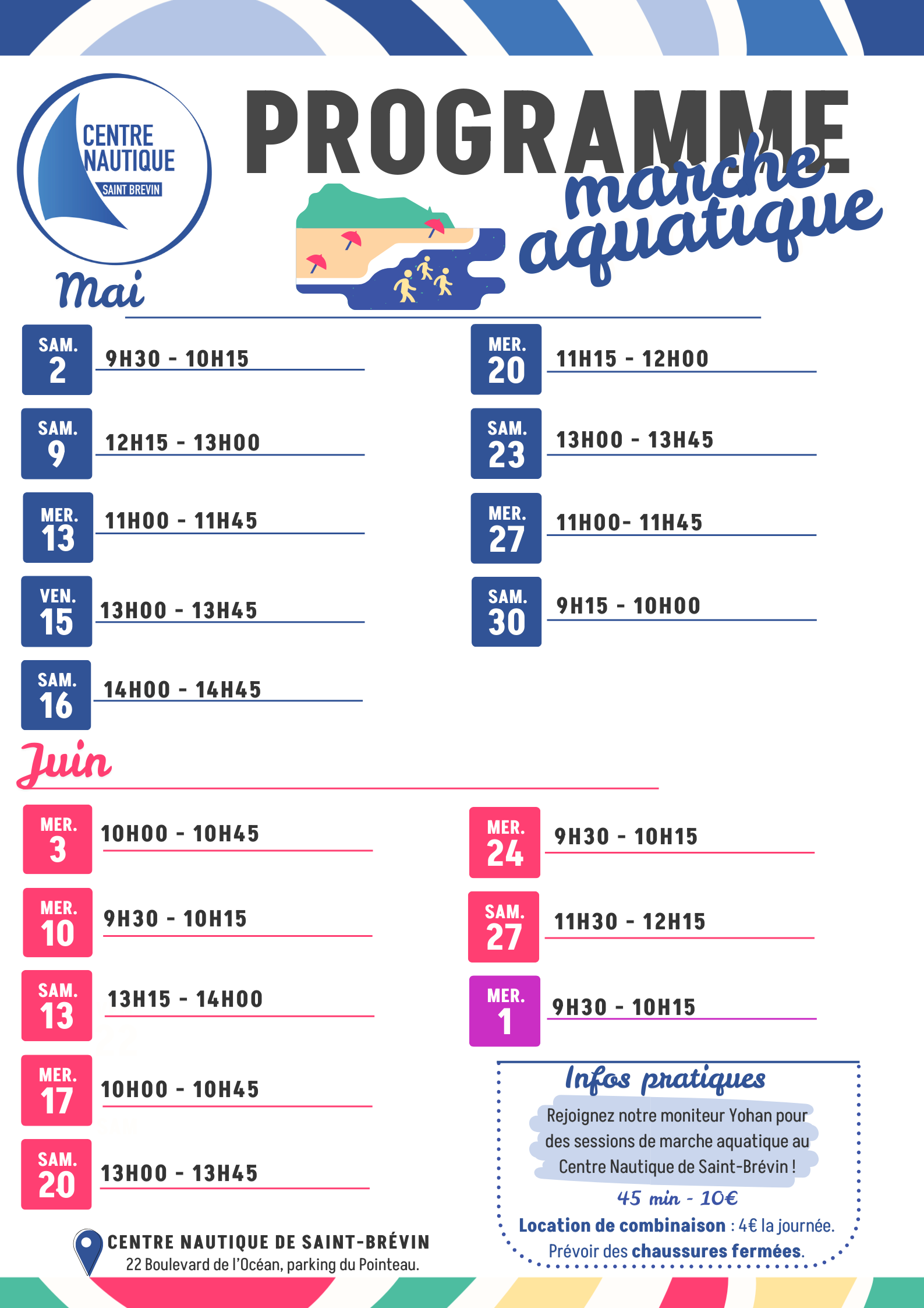 Venez rejoindre le Centre Nautique de St Brevin pour participer aux séances de marche aquatique.